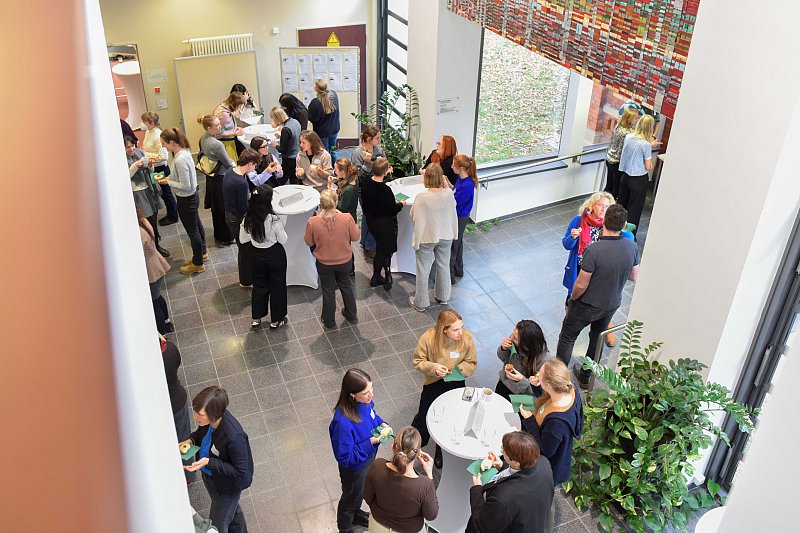 Im Anschluss bot die Veranstaltung vielfältige Gelegenheiten zum Austausch und zur Vernetzung: In der eigens eingerichteten Netzwerklounge luden drei interaktive Stationen zum Mitmachen ein. So konnten die Teilnehmer*innen das Spiel „Wer wird Professorin?“ unter Anleitung erleben, persönliche Steckbriefe zum Kennenlernen ausfüllen oder bei Kaffee und Kuchen an den Stehtischen miteinander ins Gespräch kommen. Die offene und wertschätzende Atmosphäre förderte einen lebendigen Dialog und nachhaltige Vernetzung.