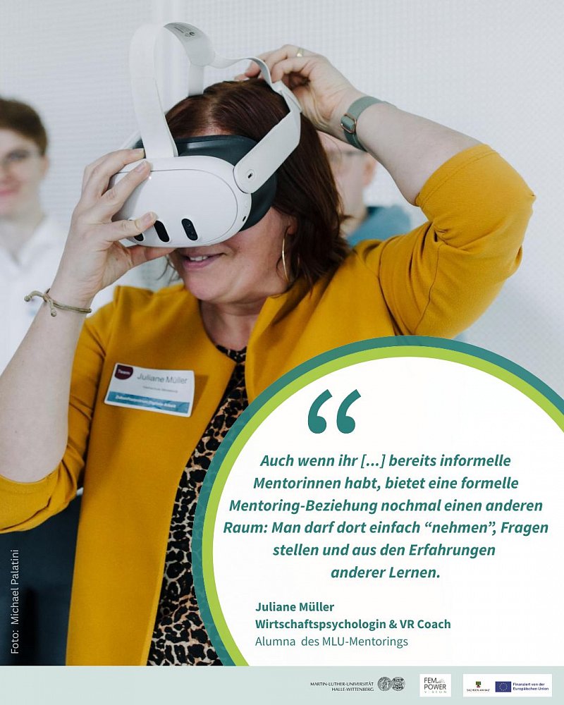 Ich war vor und während der Arbeit an meiner Promotion als wissenschaftliche Mitarbeiterin in einem Drittmittelprojekt an der MLU beschäftigt. Ich habe einmal während der Promotionsphase und einmal als Post-Doc ein Mentoringprogramm besucht und ich habe das beide Male als sehr unterstützend erlebt. Die Begleitung durch eine Mentorin eröffnete mir die Möglichkeit, vorbereitete Gespräche zu der Zeit für mich vordringlichen Themen zu führen. Die Schilderungen der persönlichen Erfahrungen der Mentorin, ihr Umgang mit Herausforderungen und ihr Zuspruch halfen mir, eigene Strategien zu entwickeln, um weitere Schritte für mich zu definieren und Richtung und Ziel meiner Karriereplanung zu reflektieren. Mithilfe der begleitenden fakultätsübergreifenden Veranstaltungen, etwa zu Selbstpräsentation, Führung, Frauen in der Wissenschaft oder Rhetorik erweiterte ich meine Kompetenzen und konnte mich mit Frauen auf der gleichen Karrierestufe austauschen – und Gemeinsamkeiten entdecken. Das war sehr hilfreich, denn ich erhielt Überblickswissen und konnte mich dadurch bezogen auf fach und Universität besser verorten.